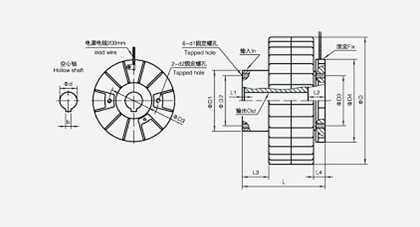 外壳旋转空心轴磁粉离合器使用安全DC24V直流电压,法兰盘输入、空心轴输出,空心轴支撑,外壳旋转。扭矩规格有6Nm、15Nm、25Nm、50Nm、100Nm、200Nm、400Nm等7个标准规格。台灵机电支持非标准规格定制生产。外壳旋转空心轴磁粉离合器结构简单紧凑、低发热低噪音、降低设备制造、维护成本低、安装操作方便、耐磨耗、使用寿命长以及安装方便不占空间等等。适合匹配张力控制器使用,并通过张力控制器调节激磁电流的大小来控制其扭矩的大小,方便、稳定。