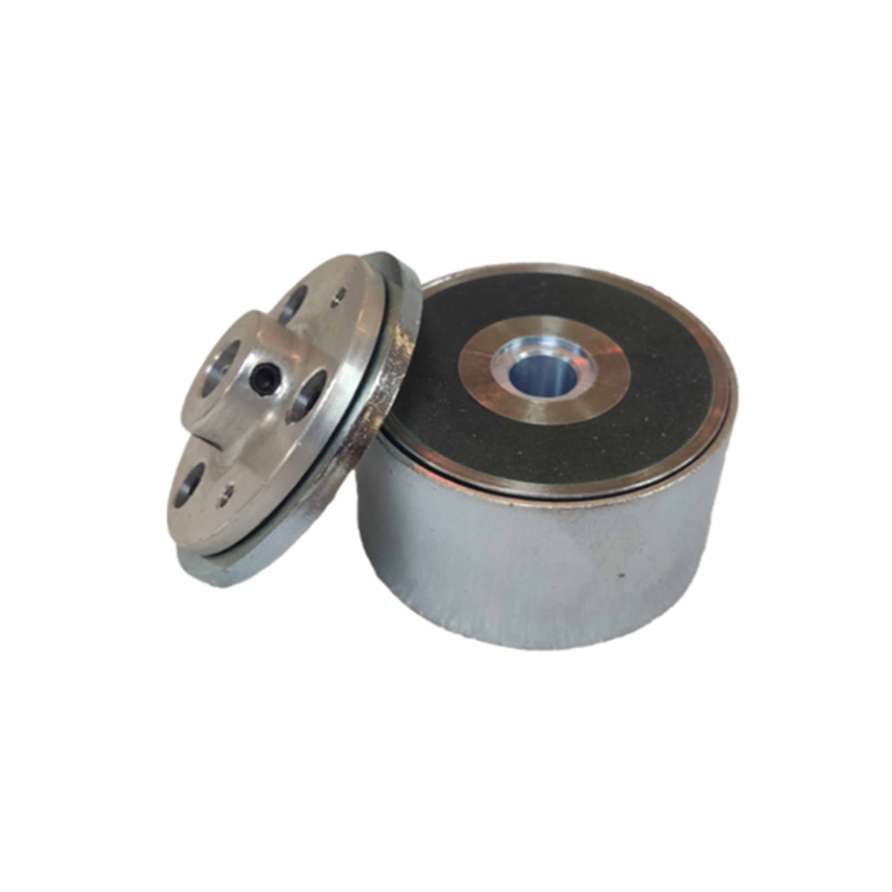 当线圈通电时产生磁力吸合“衔铁”片,离合器处于接合状态;线圈断电时“衔铁”弹回,离合器处于分离状态。24V干式单片电磁离合器一般用于环境温度-20—50%,湿度小于85%,无爆炸危险的介质中,其线圈电压波动不超过额定电压的±5%。市场上通用的DC24V-----TJ-A、TJ-A1、TJ-A2型都是干式单片电磁离合器,通电摩擦式工作。