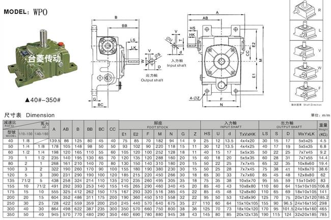 5、输出、输入轴位置方向有输入轴在下及在上;输出轴向上及向下;输入轴向上及向下。